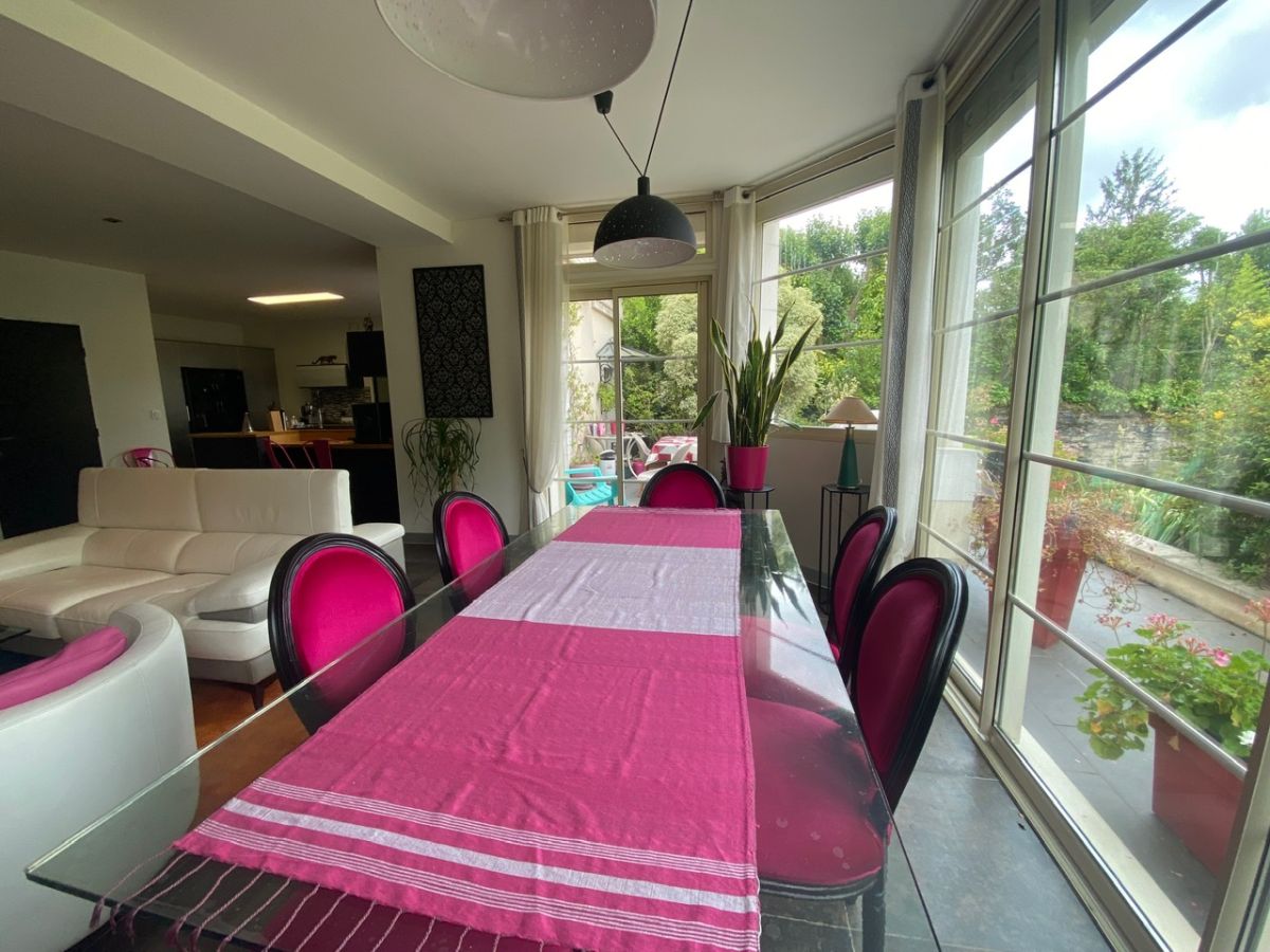 Au rez de chaussée : un appartement de plain-pied ouvre sur une immense pièce très chaleureuse et lumineuse composée d’un salon séjour avec espace salle à manger. Dans le prolongement une magnifique cuisine contemporaine ouverte sur le jardin.