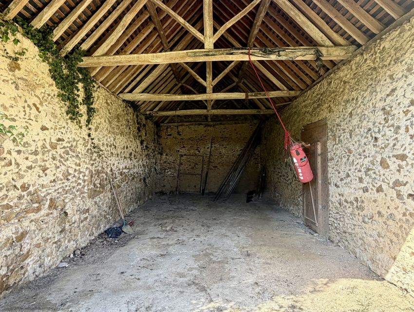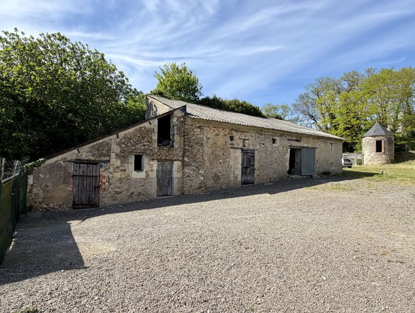 À l’extérieur, la propriété révèle tout son potentiel avec une grande dépendance faisant office d’atelier, de remise et d’anciennes écuries, une vaste grange ainsi qu’un magnifique pigeonnier. Un puits complète cet ensemble de caractère.