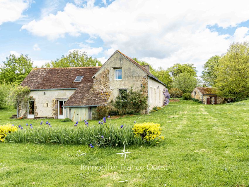 Située sur la commune de Coulans-sur-Gée, ces deux bâtiments réunis en une seule et charmante longère se trouvent seulement à 25 mn du centre-ville du Mans et de la gare TGV.