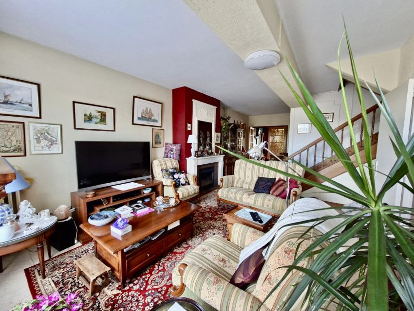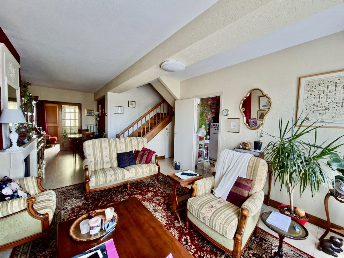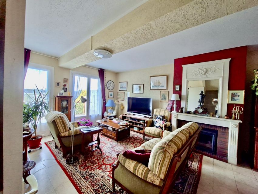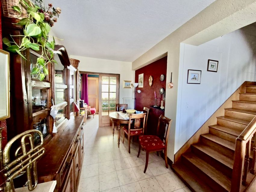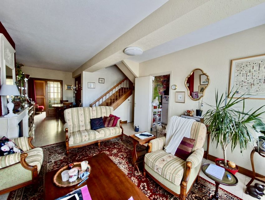 Au rez de chaussée, l'entrée ouvre sur un séjour très lumineux ouvrant sur la terrasse surplombant le jardin. Une cheminée avec insert agrémente les soirées d'hiver. Attenante au séjour, la cuisine aménagée ouvre également sur la terrasse.