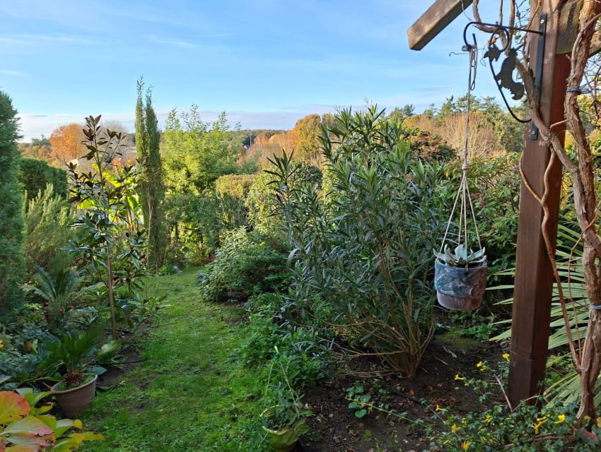 En rez de jardin, le sous-sol dispose d'une vaste cave, d'une buanderie et d'une pièce carrelée ouvrant sur une très jolie terrasse colorée et sur le jardin, planté de nombreux arbustes.