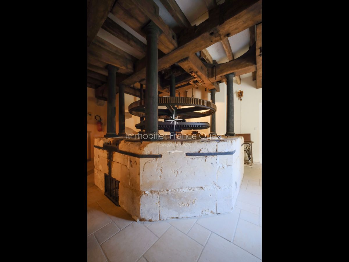 Chargée d'histoire et de caractère, la propriété a su conserver l'authenticité de son passé offrant un témoignage rare du patrimoine rural. La roue du moulin et l'ancien four à pain soigneusement préservés subliment le caractère du lieu et rappellent l'origine de cette bâtisse remarquable. A l'intérieur, les volumes s'articulent autour des anciennes mécaniques du moulin, aujourd'hui mises en valeur comme de véritables éléments décoratifs.