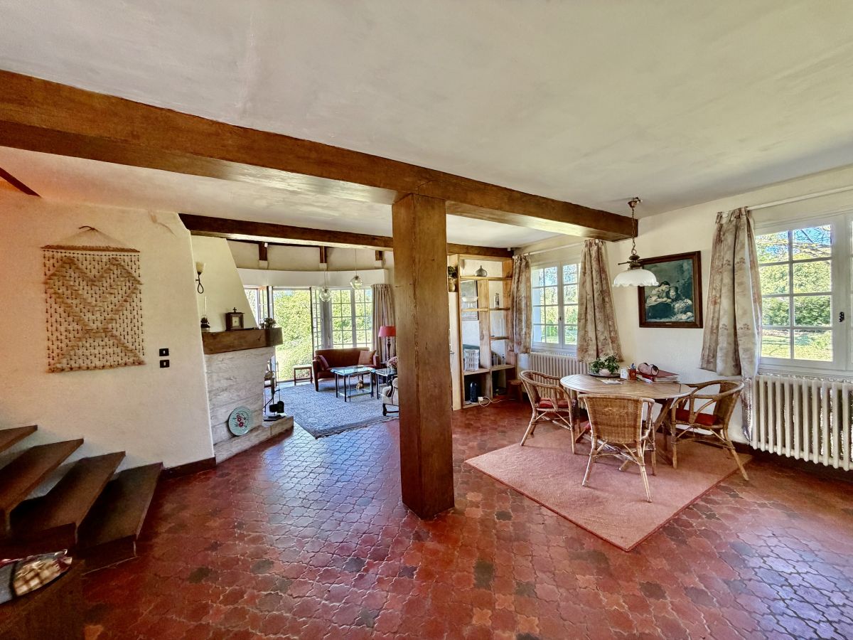 Cette propriété, fruit d’une très belle conception à l’origine, a conservé le charme rétro des années 1970, laissant entrevoir un fort potentiel de modernisation pour révéler tout son éclat.