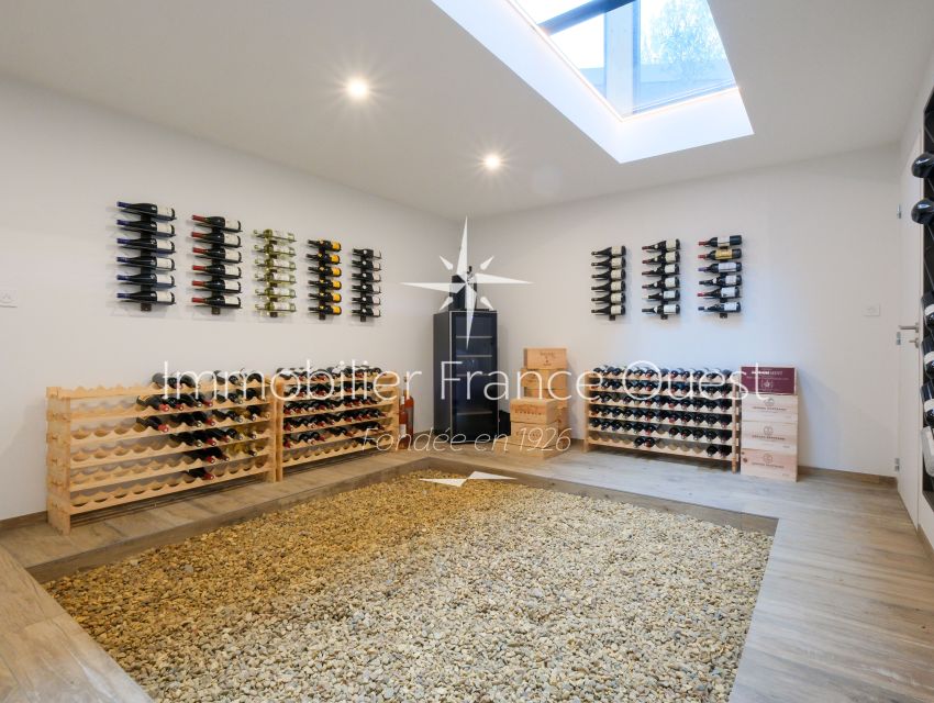 À l’intérieur, une majestueuse cuisine moderne entièrement équipée s’intègre harmonieusement à un vaste espace salon-séjour baigné de lumière, prolongeant la sensation d’espace et de liberté. Cette espace surplombe une superbe cave à vin éclairée en sous-sol — un écrin idéal pour les amateurs d’œnologie.